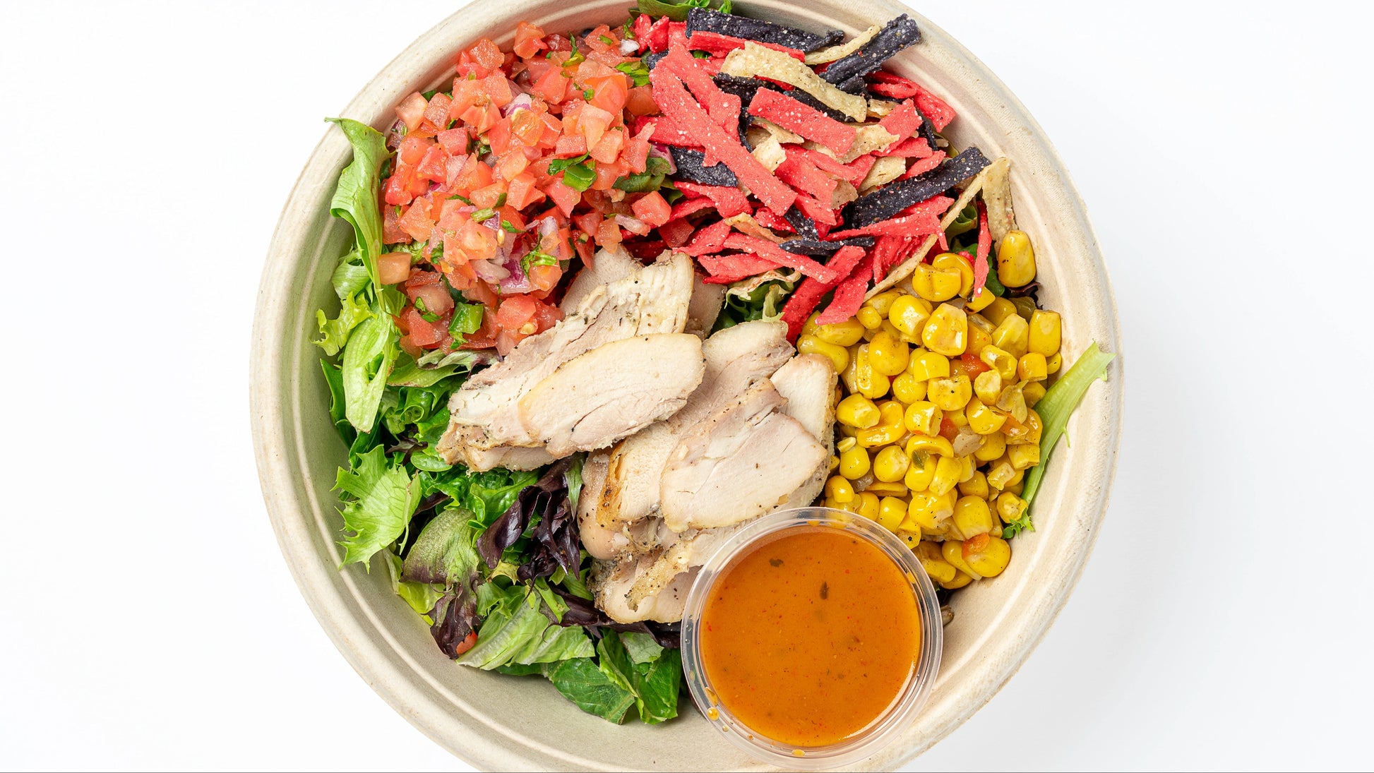 Mixed greens, pico de gallo, corn & black beans, pickled jalapenos, tortilla strips and chicken with an adobo vinaigrette