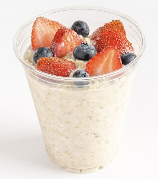 Crafted from wholesome steel-cut oatmeal soaked in almond milk, delicately sweetened with honey, and garnished with a medley of seasonal berries.