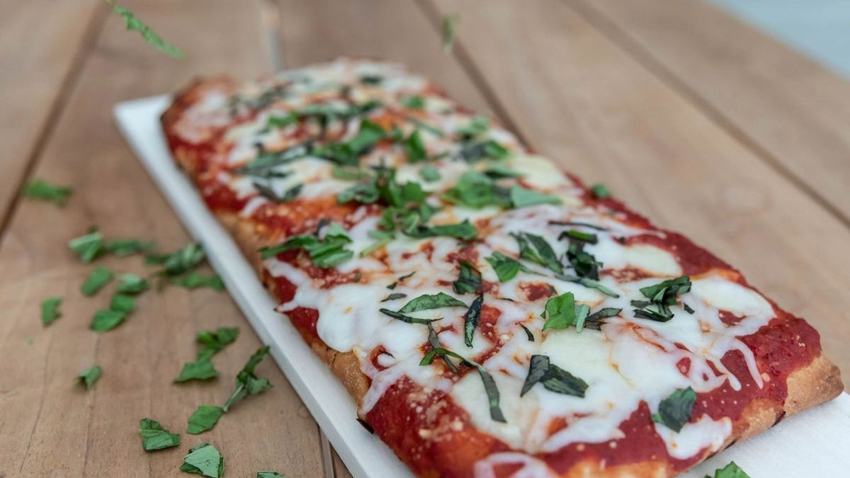 tangy marinara, blend of shredded and fresh mozzarella, fresh basil (vegetarian)