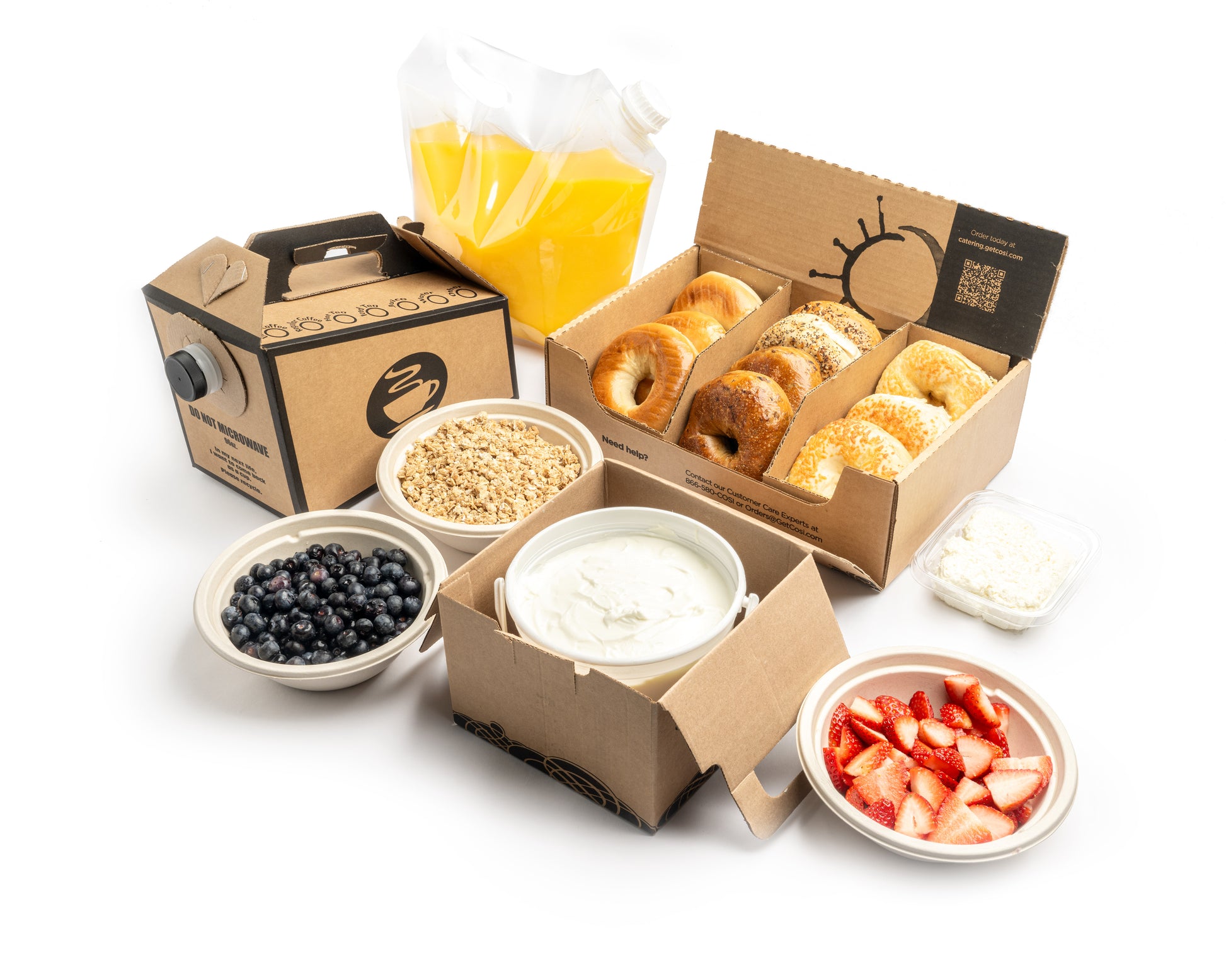 Motivate your morning crowd with our Morning Motivator Bundle! Includes an assortment of bagels with your choice of spread, either a yogurt parfait bar or oatmeal bar, coffee and orange juice. Serves up to 10 people.