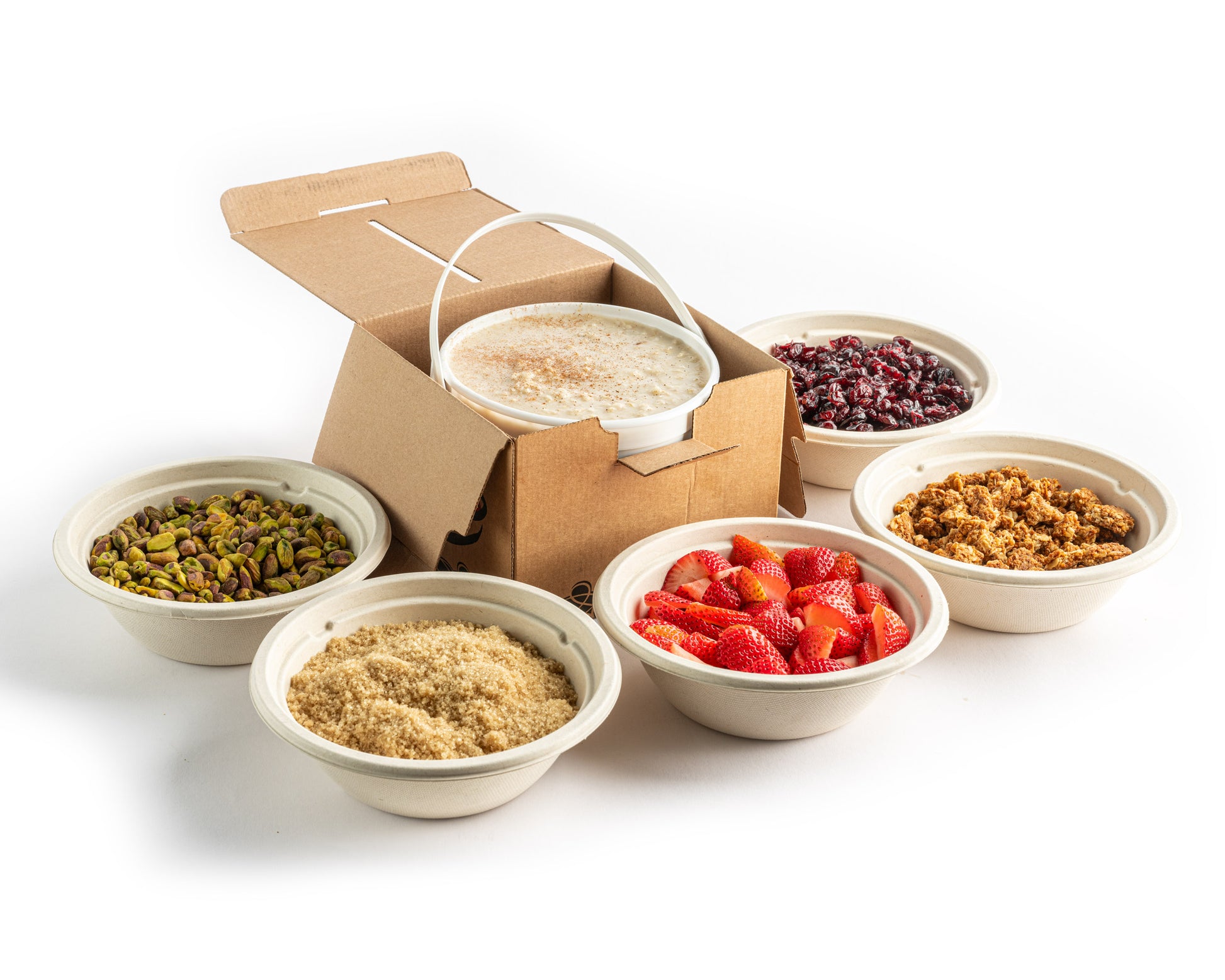 A great way to fuel your morning! Served buffet style with dried cranberries, pistachios, strawberries, brown sugar and granola.