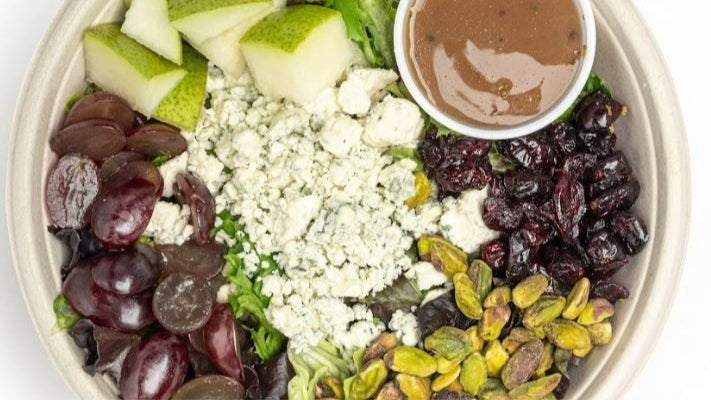 Mixed greens, grapes, pears, pistachios, dried cranberries, blue cheese, sherry shallot vinaigrette